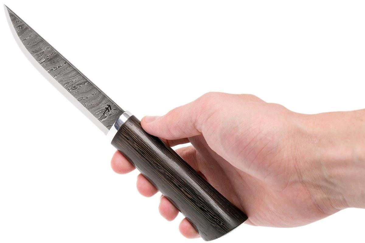 Le Autine Damascus Bushcrafter est un superbe couteau de bushcraft fabriqué à la main en Lettonie. Vraiment cool et aussi très agréable à utiliser. La pièce maîtresse de toute collection de couteaux.