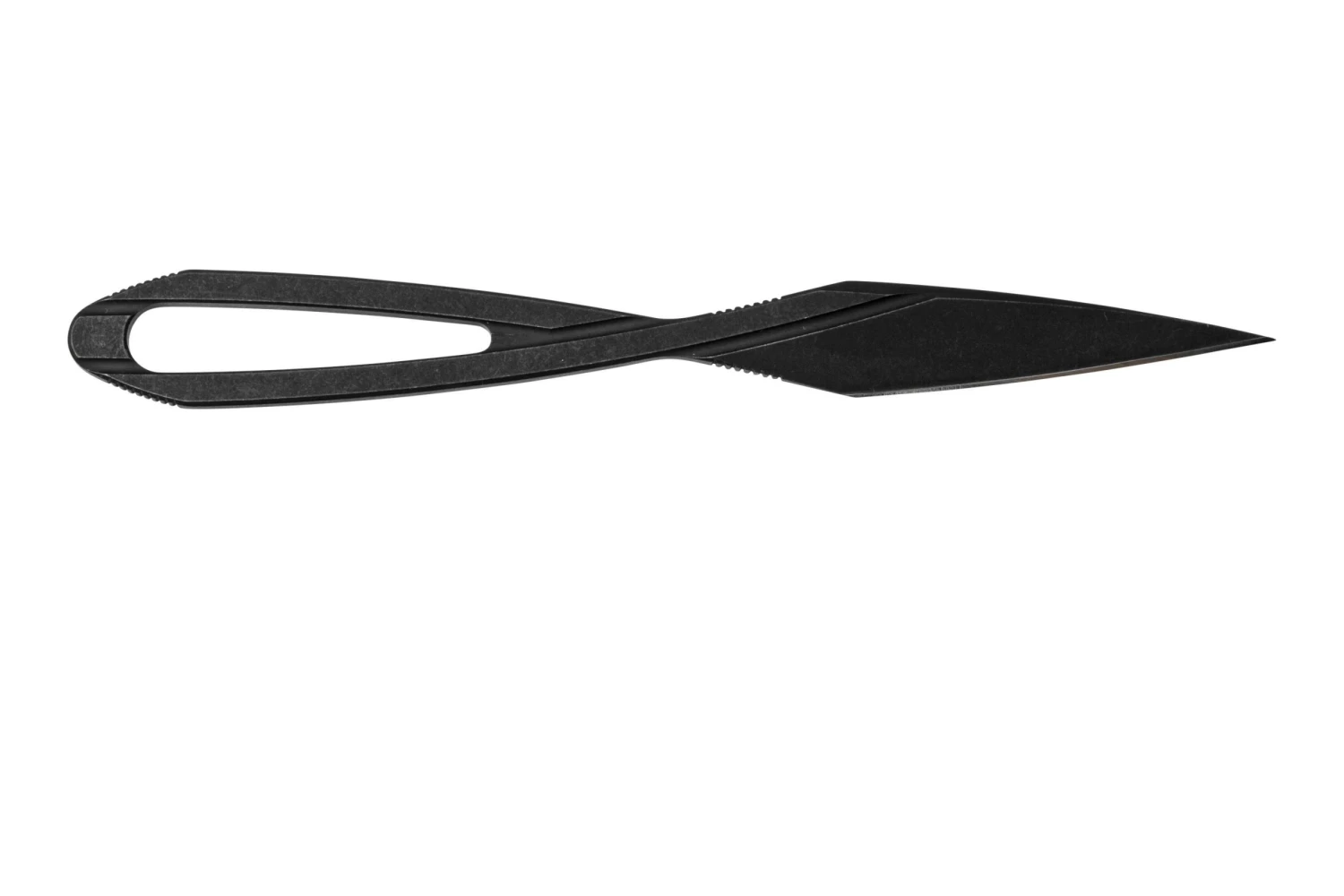 Le Civivi D-Art noir. Est-ce un bijou ? Est-ce un outil ? Les deux ! Le nom D-Art est un jeu de mots avec l’expression « objet d’art » et « dart » qui signifie fléchette en anglais. Un objet fin et pointu. Ce couteau de cou moderne a été conçu par Ostap Hel. Un designer de couteaux polonais réputé pour ces designs associant concepts traditionnels et formes modernes.