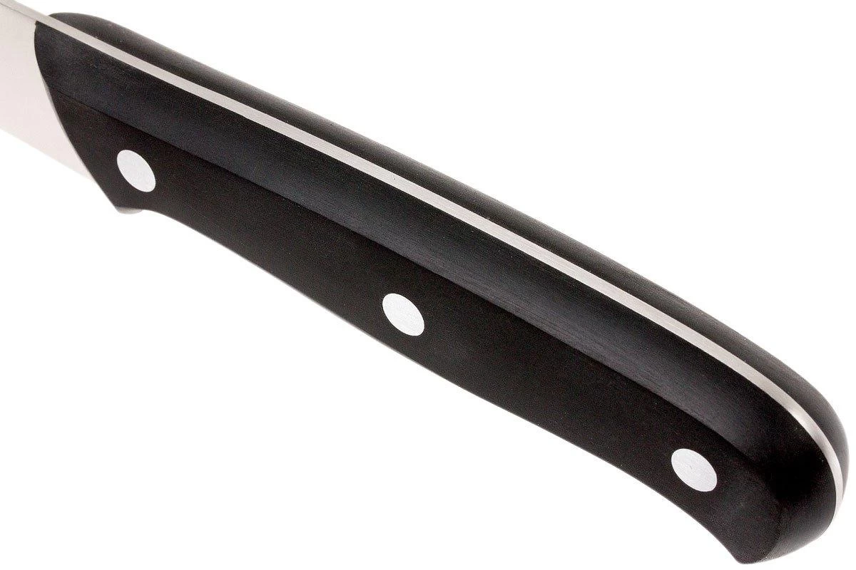 Ce couteau universelEden Essentials est un couteau très polyvalent. Il a une lame longue et mince et convient pour divers travaux de coupes. La lame a une arche pointue qui vous permet de couper bon nombres d’aliments. Ce couteau vous aidera à accomplir toutes tâches que le couteau de chef ne peut réaliser. Que ce soit pour couper du fromage, du saucisson ou des herbes.