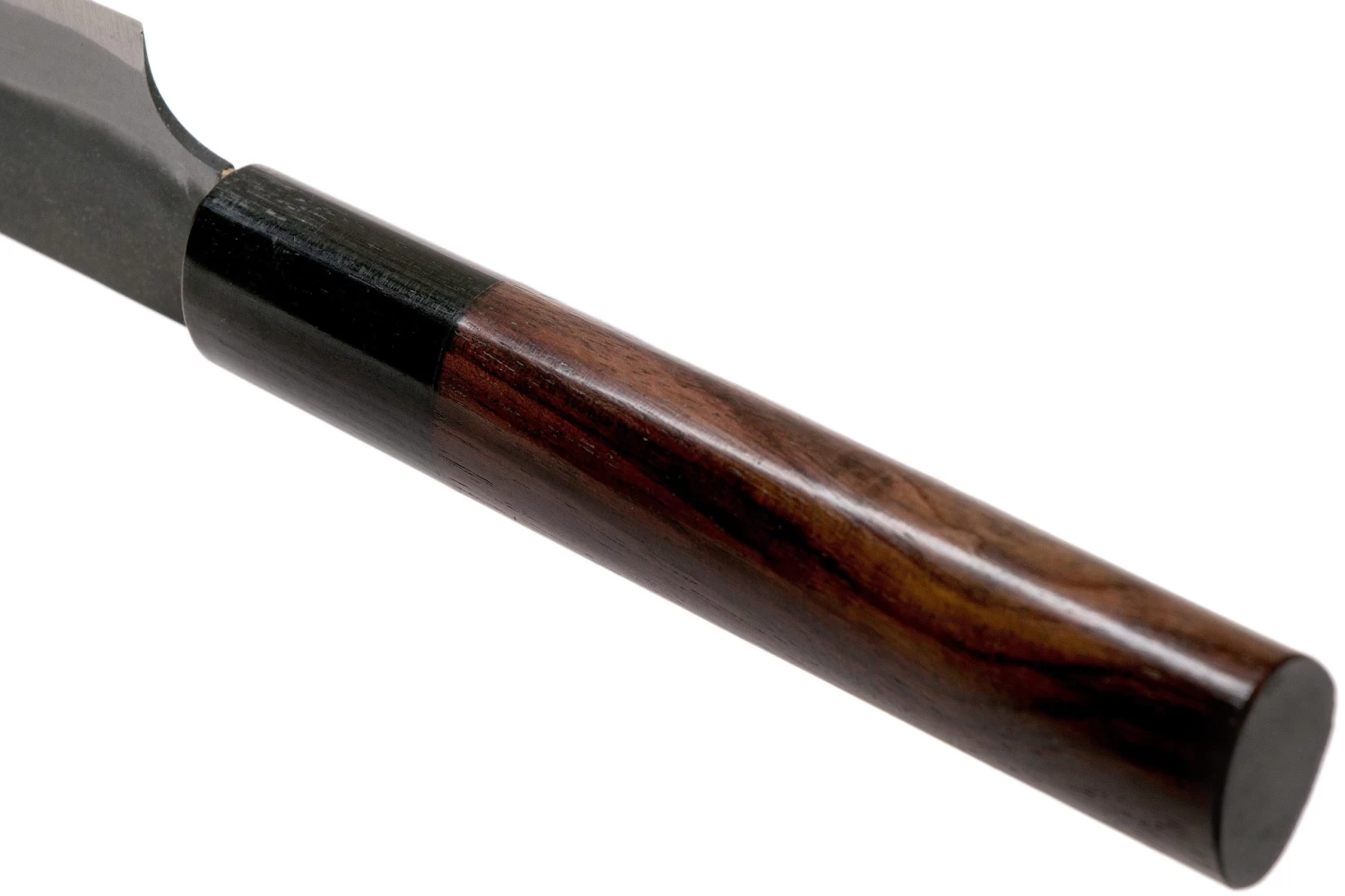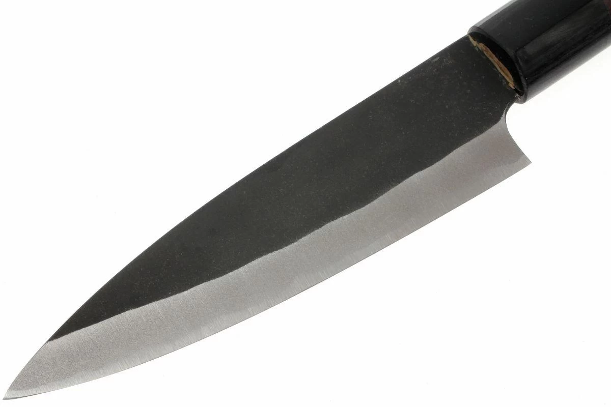 Ce couteau universel Eden Kanso Aogami est très polyvalent. Avec sa lame longue et fine, ce couteau est adapté pour de nombreuses coupes. La lame est légèrement courbée, et très pointue. Cela permet de pouvoir faire basculer le couteau sur la planche à découper lors de la coupe. La pointe est pratique pour les coupes de précision. Ce couteau s’avère particulièrement utile lorsque le couteau de chef est trop gros. Pour couper du fromage, du saucisson ou encore des herbes aromatiques par exemple.