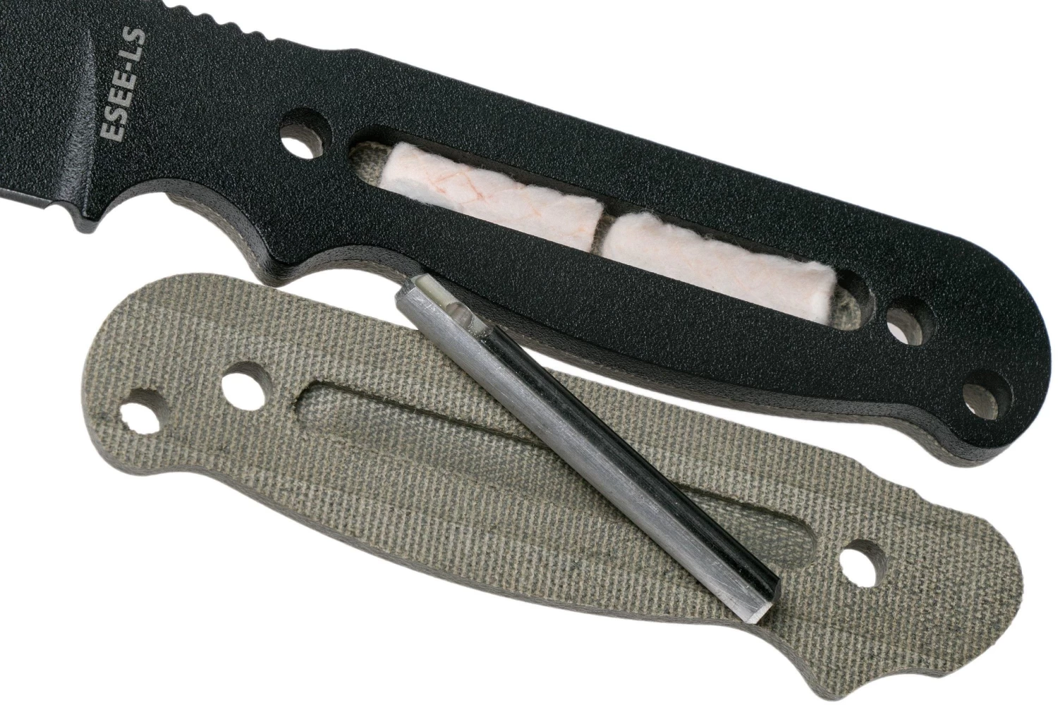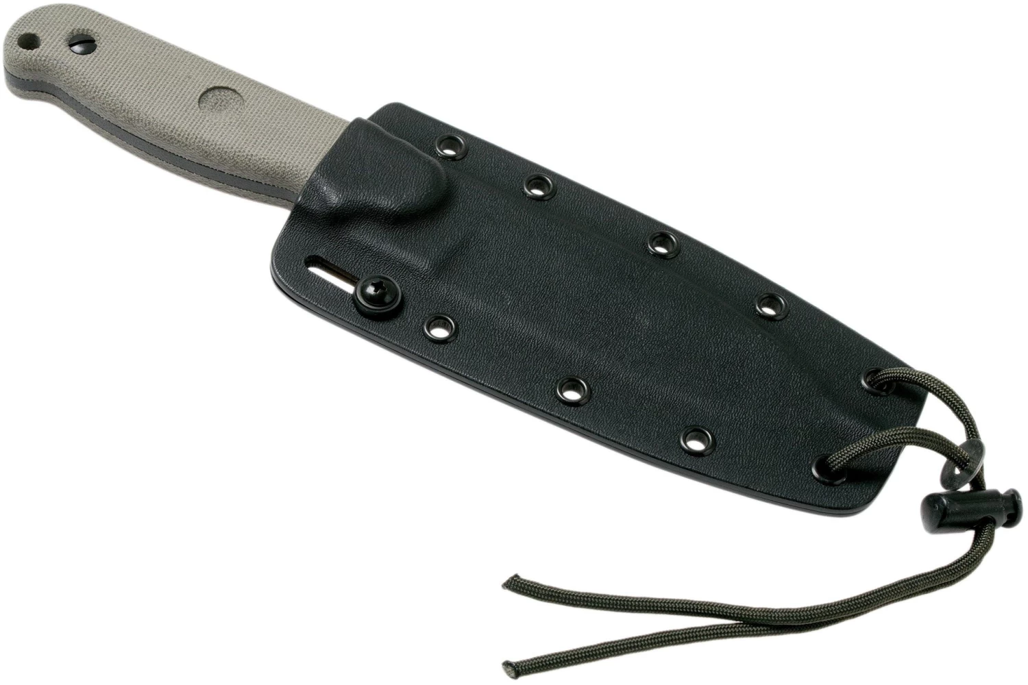 L’ESEE Laser Strike est un frère du Model 4. Il est légèrement plus grand, ce qui donne à votre main un peu plus d’espace. La lame est en acier au carbone 1095. L’enduit de poudre extrêmement durable appliqué sur la lame permet de la protéger contre la plus grande sensibilité à la rouille de l’acier au carbone. La grande performance de l’acier garantit un plaisir d’utilisation à vie. La lame full tang a une poignée en Micarta. Cette poignée est un peu rugueuse au toucher, ce qui est bon pour l’adhérence et le confort.