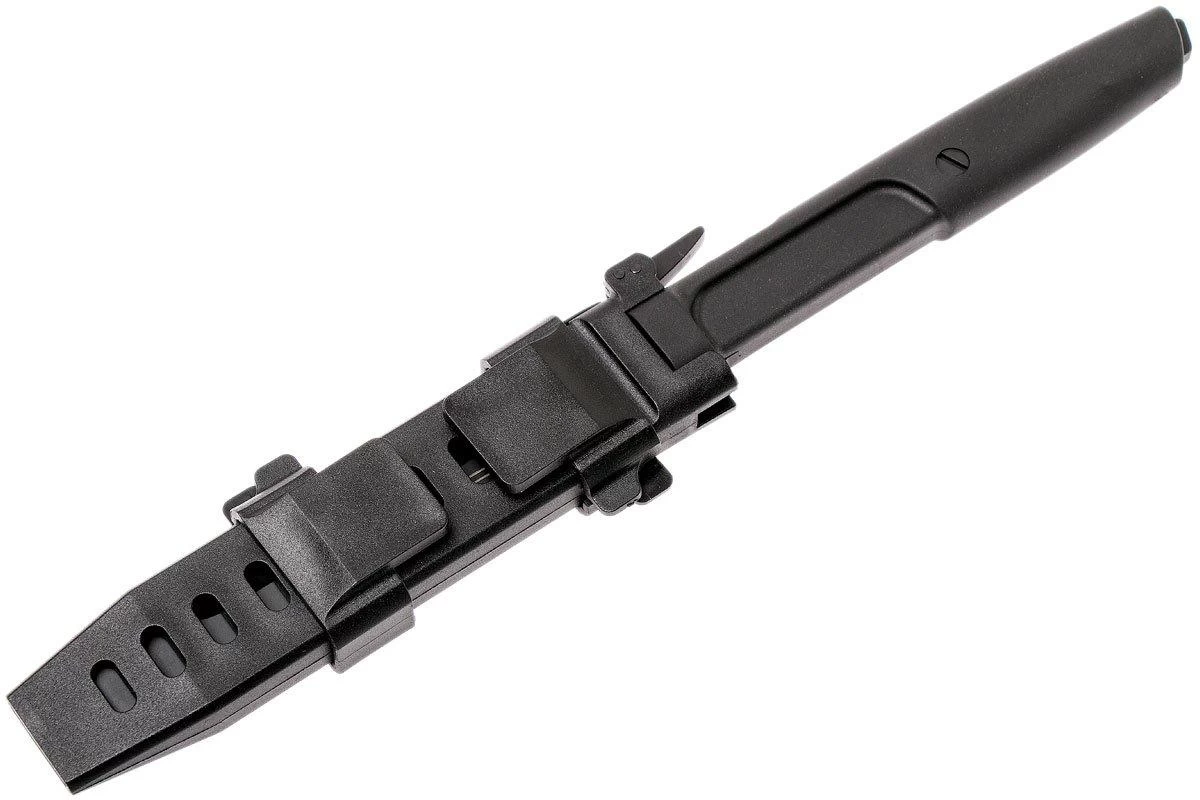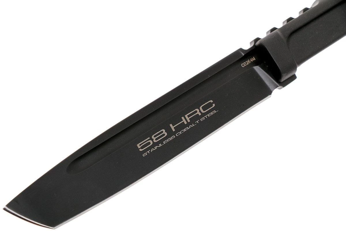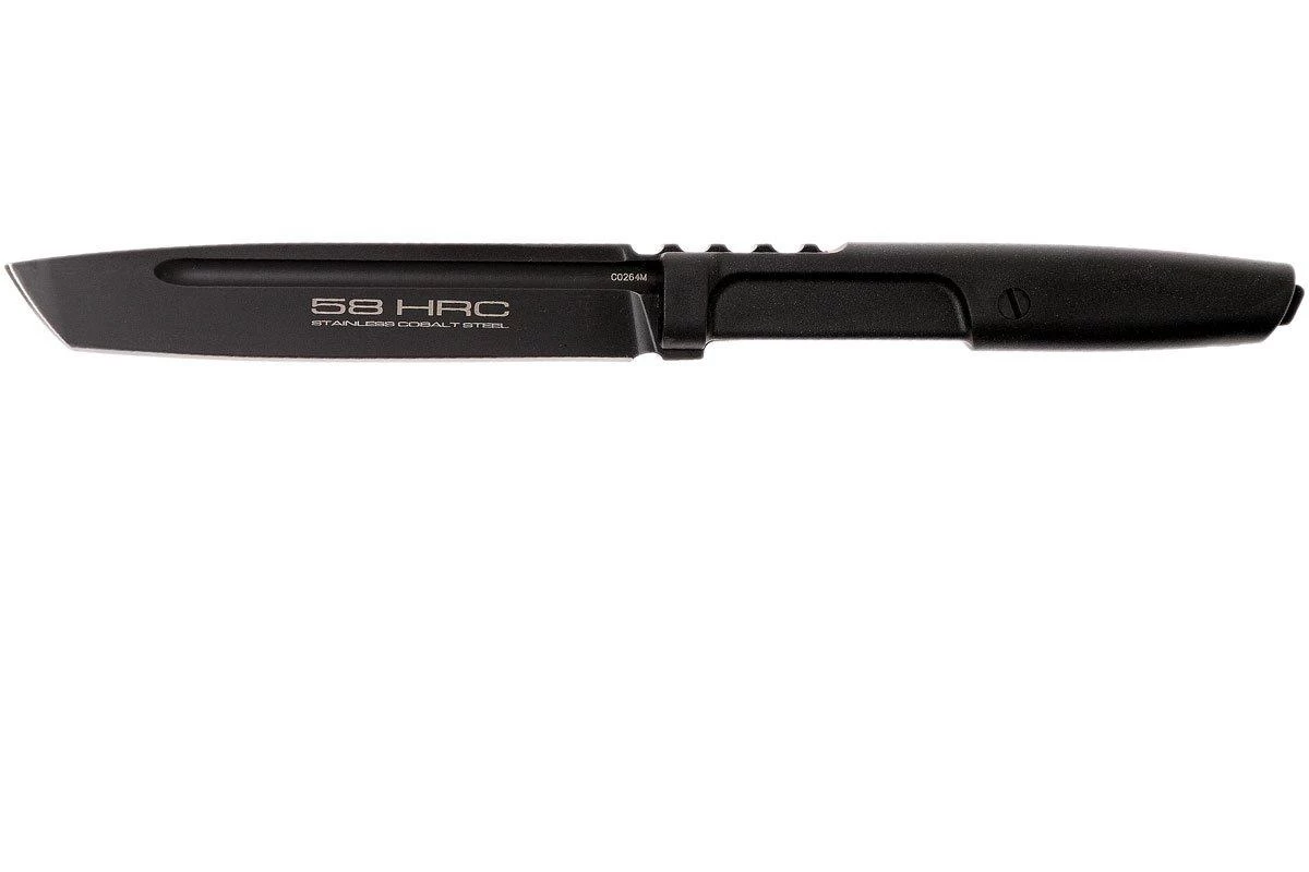Le Extrema Ratio Mamba est un couteau fixe fin, avec une lame tanto caractéristique. Le Mamba tient son nom du serpent Mamba qui vit en Afrique. Son aspect fin est également comparable. Tous deux redoutables ! La lame est en acier inoxydable Böhler N690. Un type d’acier qui conserve très bien son tranchant tout en étant facile à aiguiser. La lame est de style tanto. Une forme pointue qui peut facilement percer. Les échancrures de chaque côté réduisent son poids et améliorent son équilibre. Le manche est en plastique Forprène durable. Confortable en main, même pour une utilisation intensive. La lame en pleine soie est visible à l’extrémité du manche.