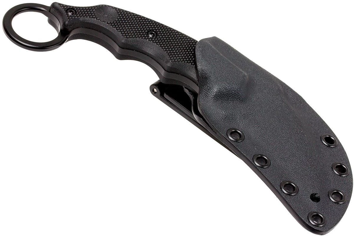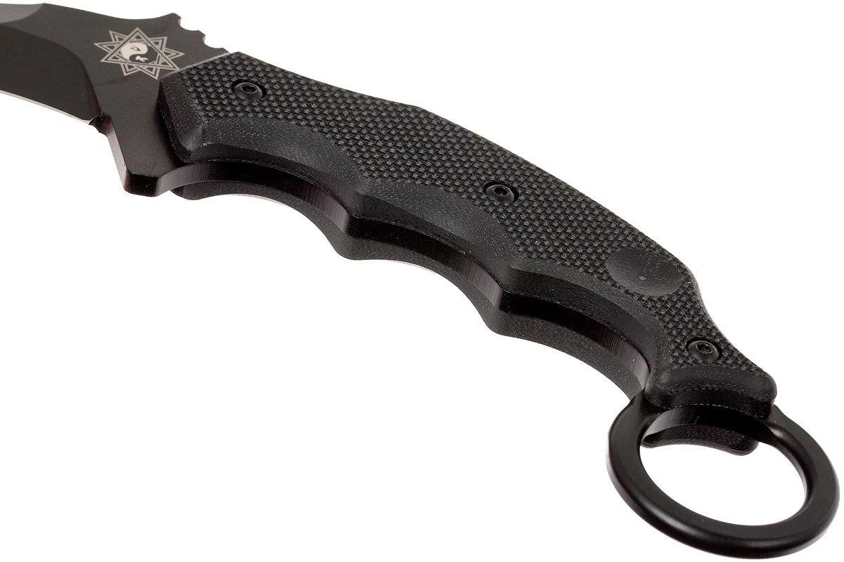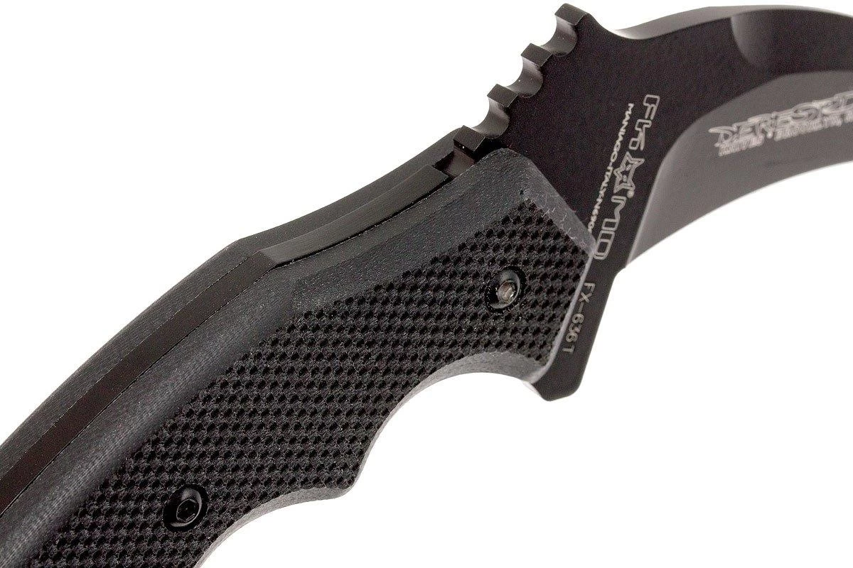 Le Fox Desperina Kuku Hanuman Karambit est un couteau fixe karambit typique. Un manche dense avec anneau pour doigt, bonne adhérence grâce aux plaquettes en G10, et une lame courbée ultratranchante. Tout ce que vous attendez d’un Karambit. La lame en acier Böhler N690Co reste longtemps tranchante. La forme de lame est extra pour ouvrir des emballages.
