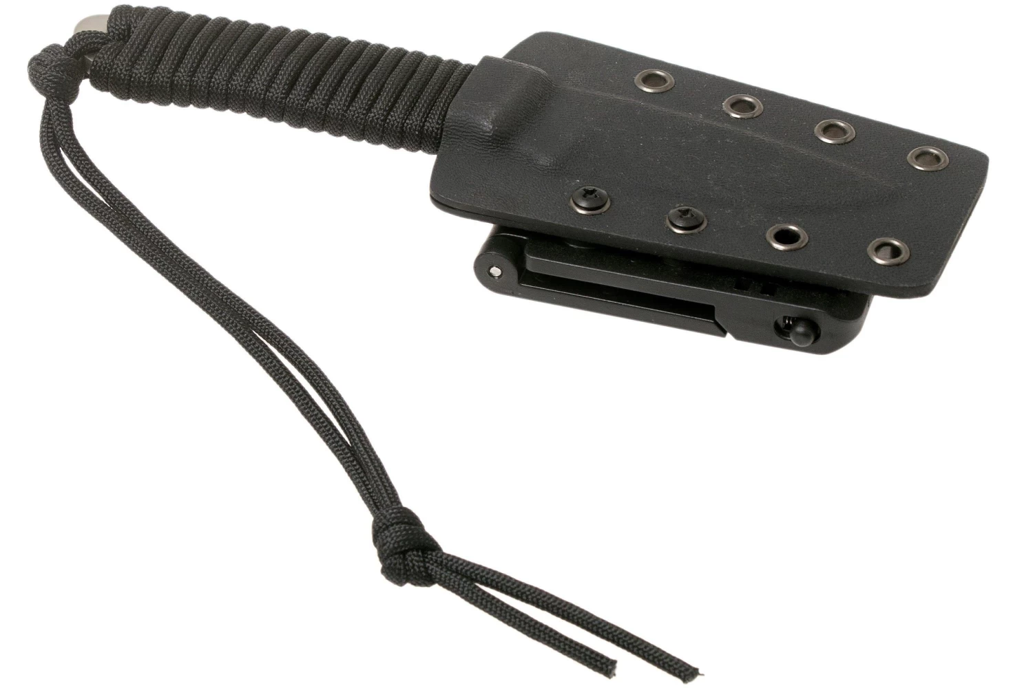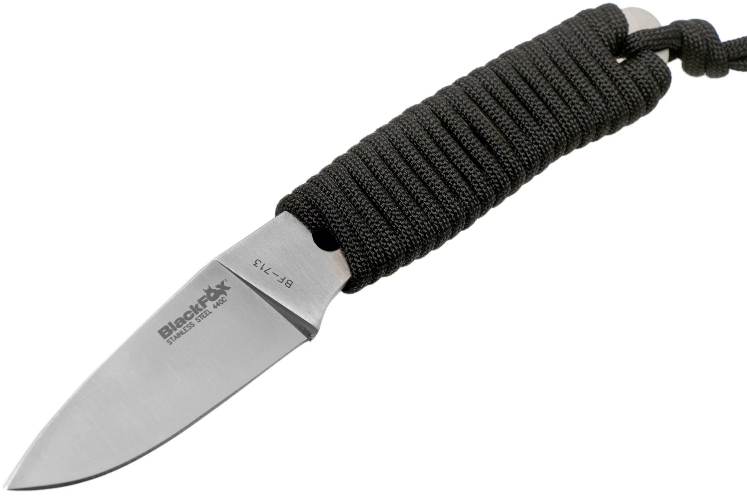 Le Black Fox Tarlo BF-713 est un couteau fixe, conçu par Alfredo Doricchi. Il s’agit d’un couteau fixe EDC, ou couteau de réserve. Ce n’est donc pas un couteau de survie énorme, mais un couteau compact et abordable. Il est compact de par son profil assez fin. L’absence de plaquettes de manche le rend très discret. Au lieu de celles-ci se trouve un morceau de paracorde enroulé. Vous pouvez tout à fait la remplacer pour une paracorde d’une autre couleur.