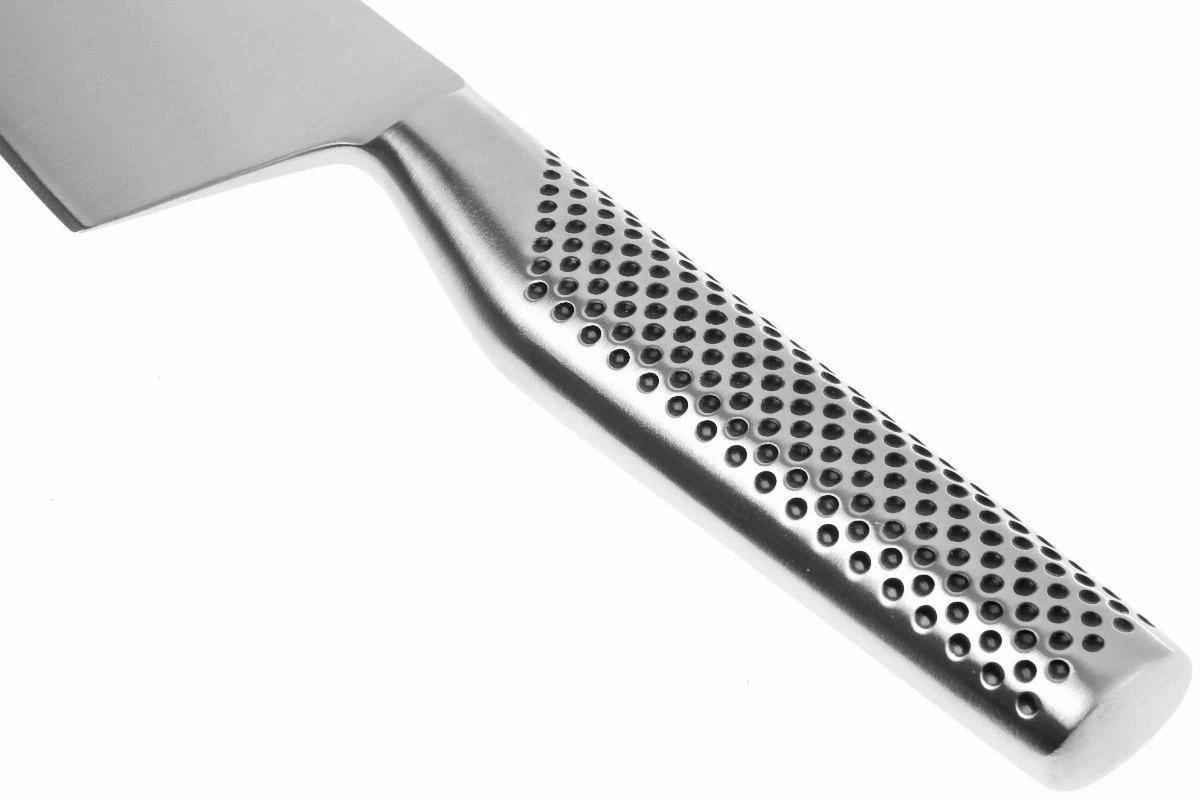 Le couteau à légumes Global GF36 Nakiri 19 cm est parfait pour couper les légumes et fruits très finement. On retrouve le nakiri dans la plupart des cuisines au Japon. Sa lame haute et carrée se prête parfaitement à la coupe fine et rapide de légumes, fruits et herbes aromatiques. La lame haute peut reposer le long des doigts pendant la coupe, pour un travail plus sûr. Ce couteau permet de couper les carottes, concombres, choux et autres légumes finement et sans effort. La lame est dotée de petites alvéoles. Cela empêche les aliments de coller sur la lame.