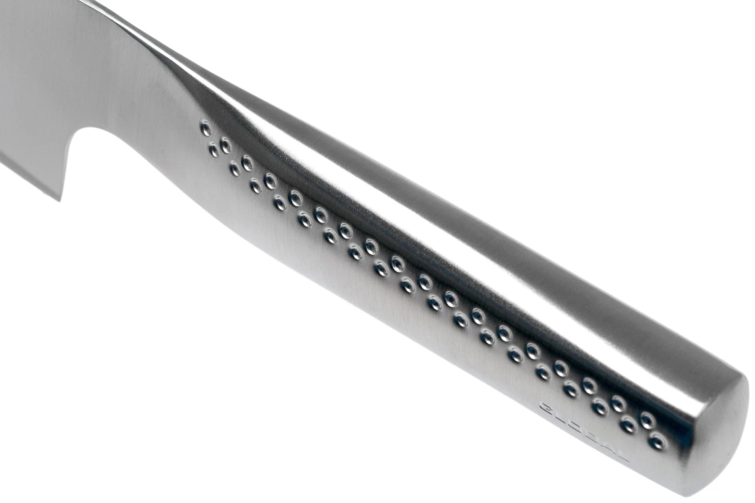 Le santoku Global NI GN-006 avec alvéoles est le couteau à légumes parfait. La lame ronde est parfaite pour un mouvement fluide et les alvéoles dans la lame préviennent les aliments de coller.