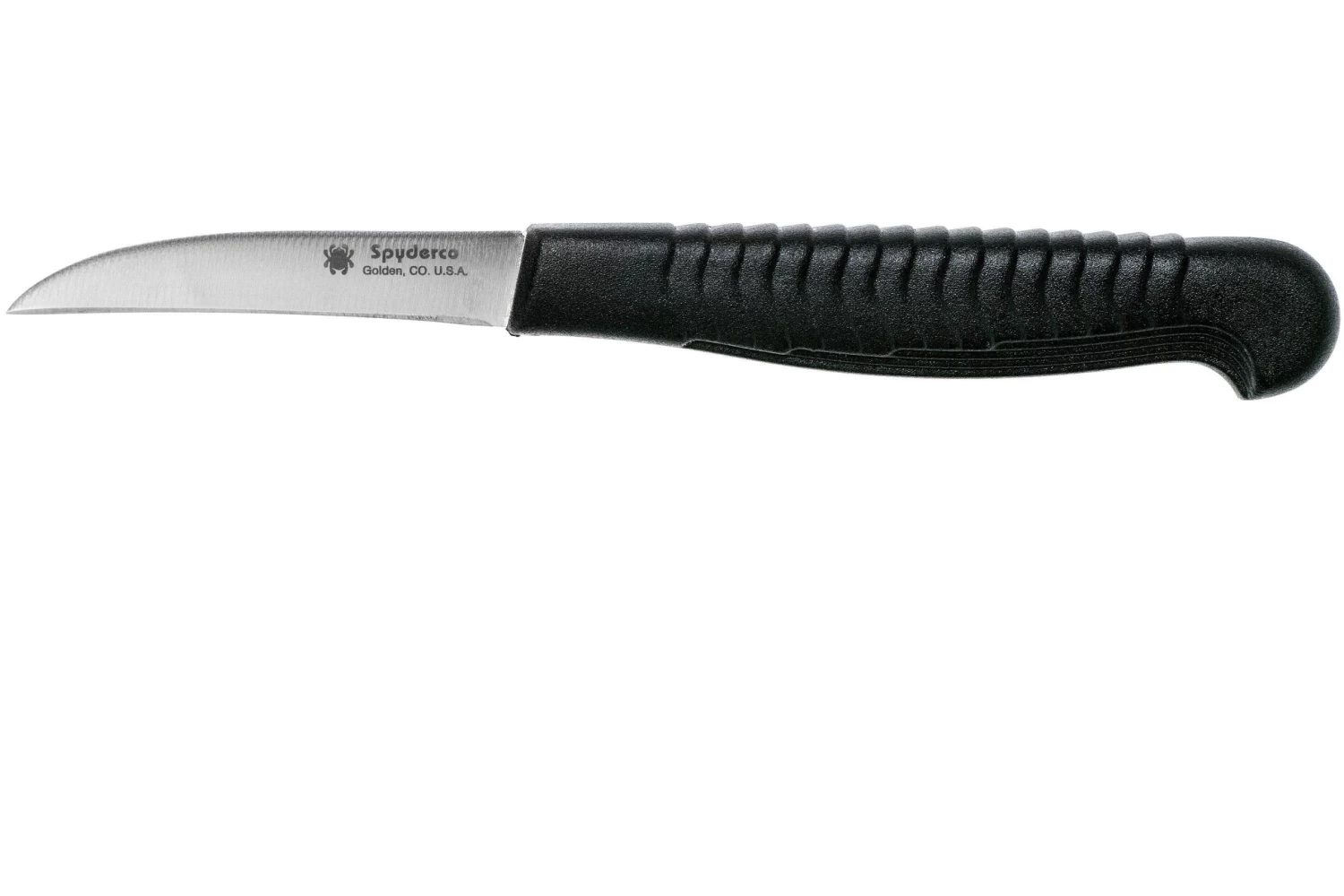 Ce petit couteau bec d’oiseau K09PBK de Spyderco est parfait pour l’épluchage et les petites découpes. La lame finement aiguisée rend ce couteau parfait pour toutes les tâches de précision telles que couper des tranches très minces ou éplucher des légumes. Sa forme arrondie vous facilite la tâche avec les ingrédients de forme ronde.