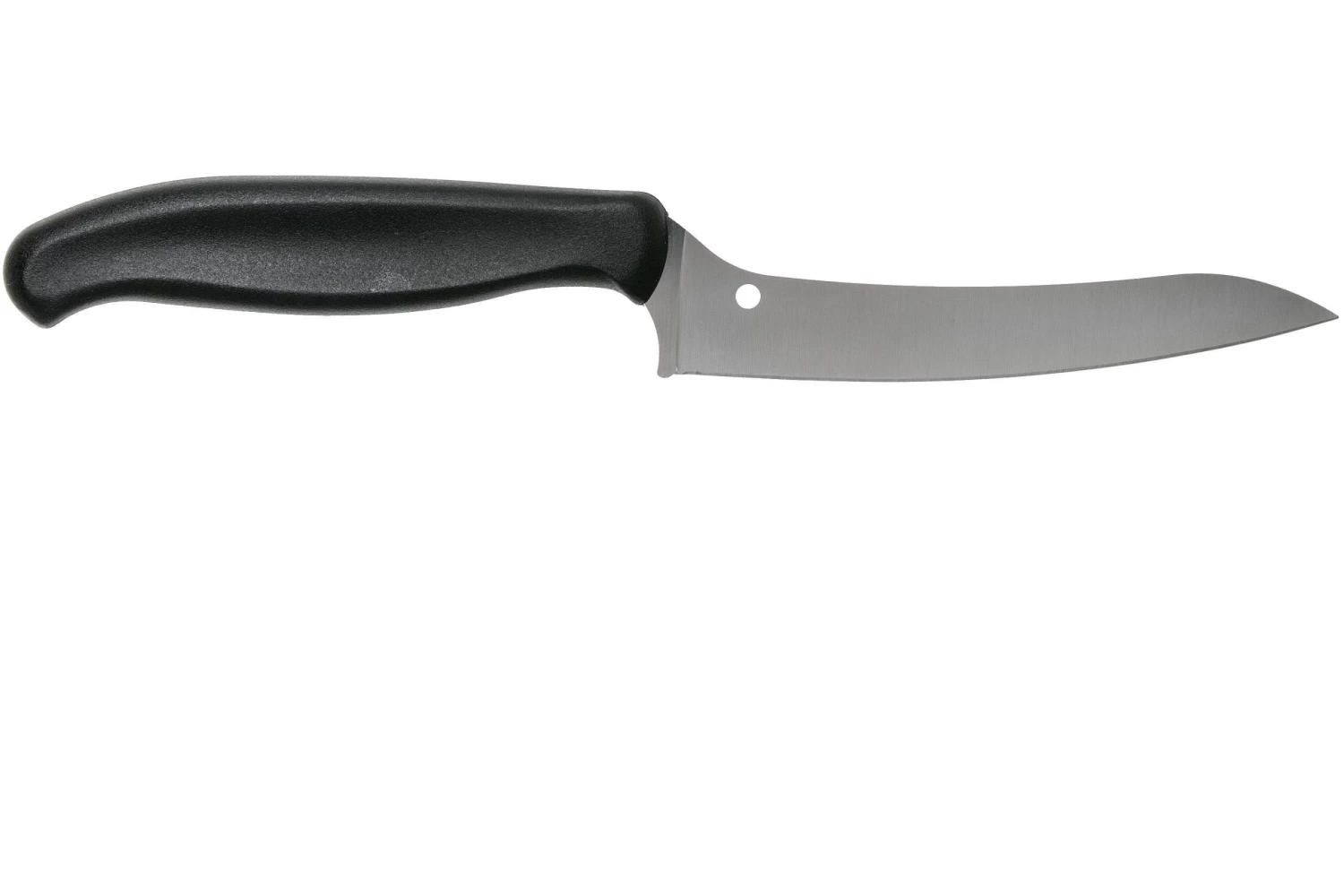 Le Spyderco Z-Cut K14PBK est un couteau universel spécialement conçu pour presque tous les travaux en cuisine ! De l’ouverture d’un emballage avec l’extrémité pointue à la coupe d’une tomate ou d’un morceau de poisson avec la coupe courbe. La courbe de la lame et le manche surélevé permettent d’effectuer un bon mouvement de balancier pour des performances de coupe encore meilleures.
