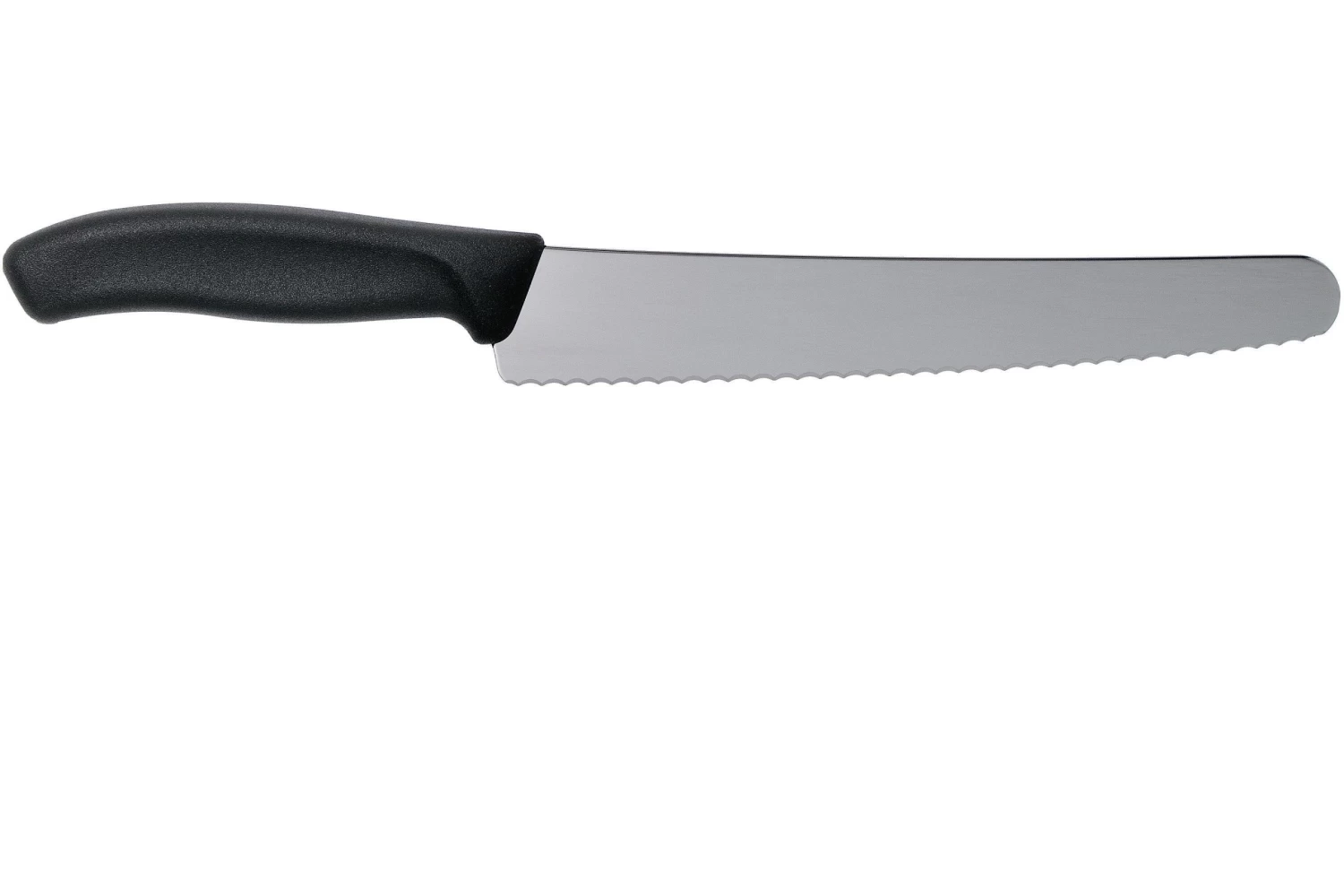 Le couteau à pain et à gâteau Victorinox SwissClassic est idéal pour couper du pain, une tarte ou un gâteau. La lame reste large jusqu’au bout arrondi, afin de pouvoir l’utiliser aussi comme pelle à tarte ou spatule.